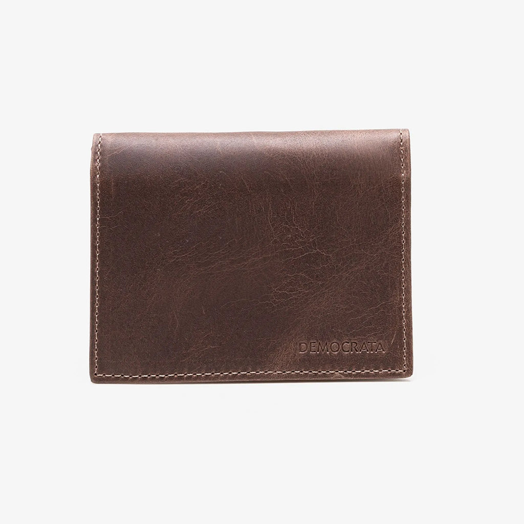 Carteira confeccionada em couro, na cor caramelo. Parte interna com 4 divisórias para cartões, 1 divisória para moedas,1 compartimento interno extra, e 1 abertura total para cédulas.Dimensões: 10,5cm x 8cm